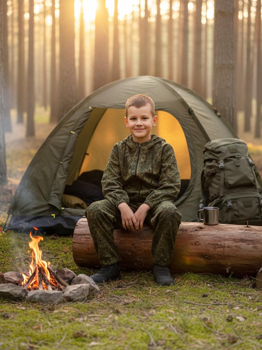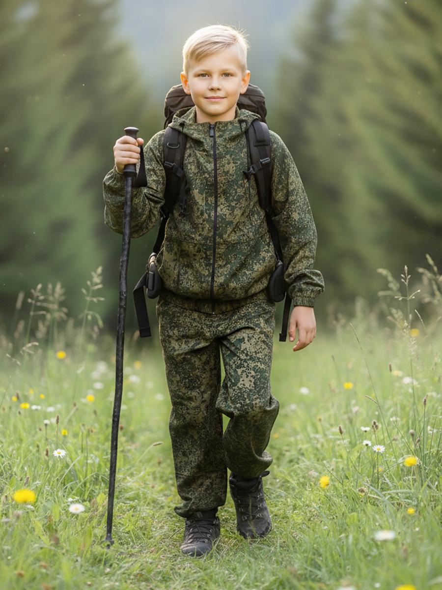 Костюм состоит из куртки и брюк. Куртка укороченная с капюшоном, центральной застежкой на тесьму-молнию, рукав втачной по низу стянут эластичной тесьмой. Низ куртки стянут на эластичную тесьму. Брюки прямые на поясе стянуты эластичной тесьмой. Выполнен из облегченной х/б ткани, упакован в компактную сумочку из аналогичной ткани. ГОСТ 25295-2003