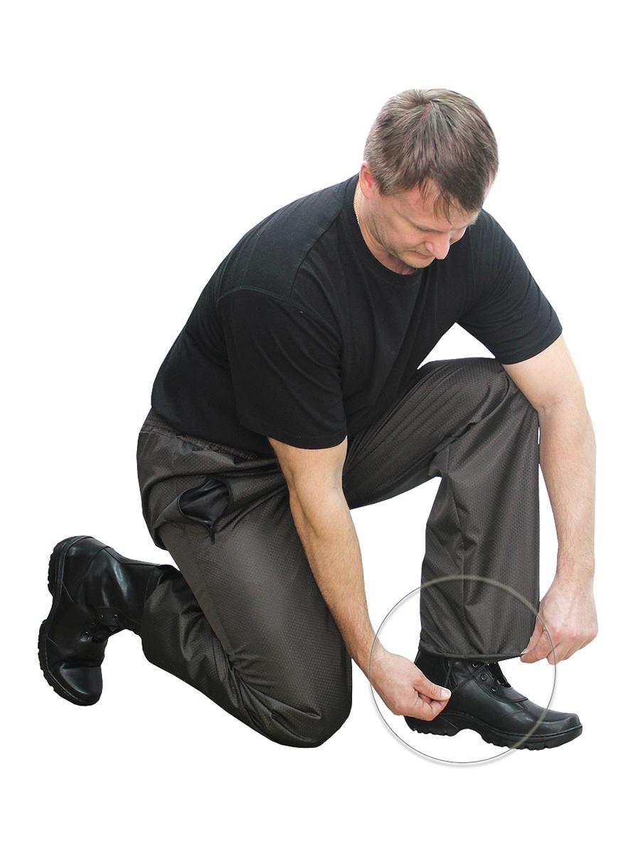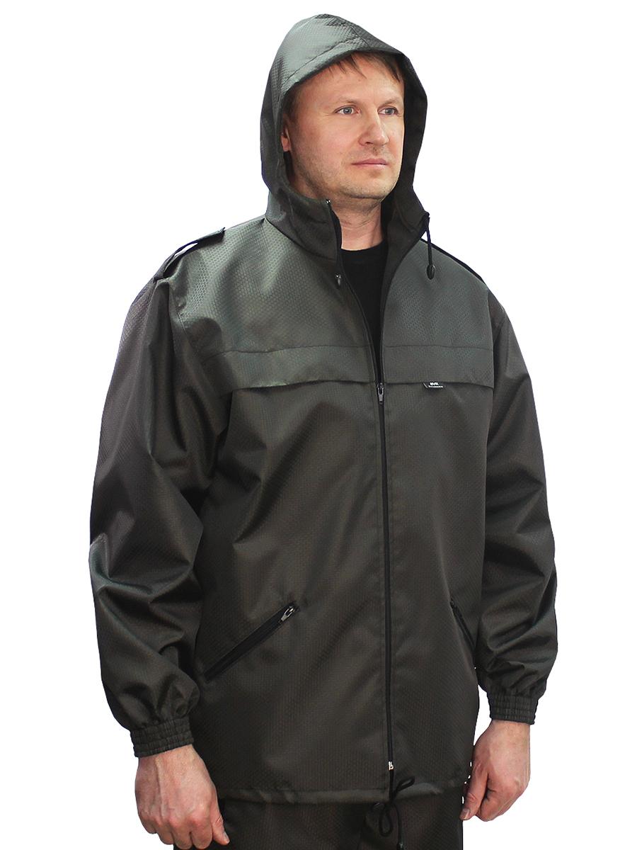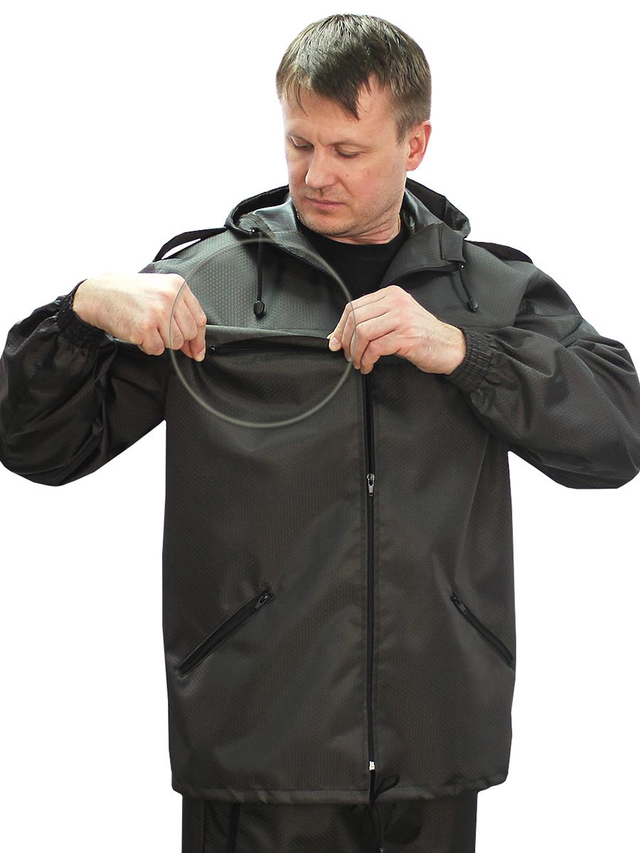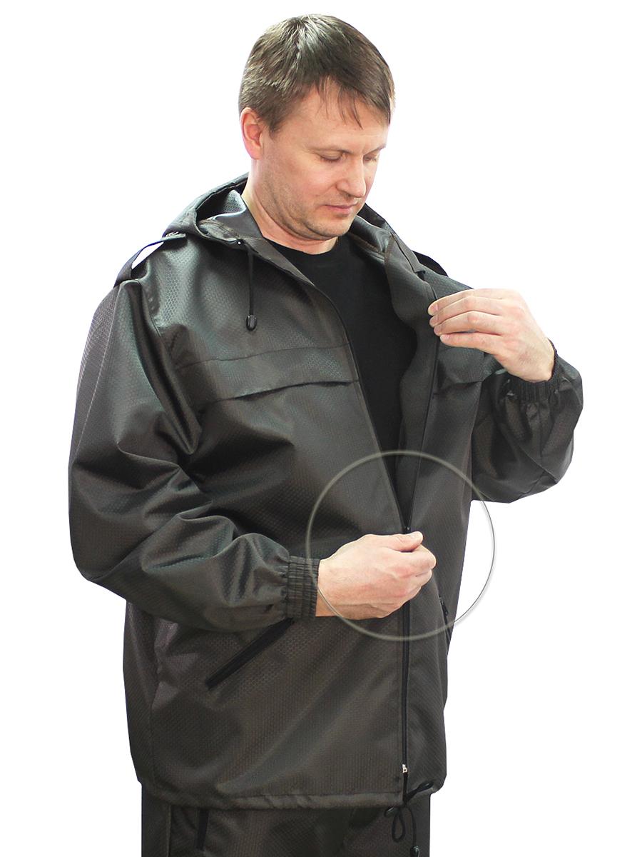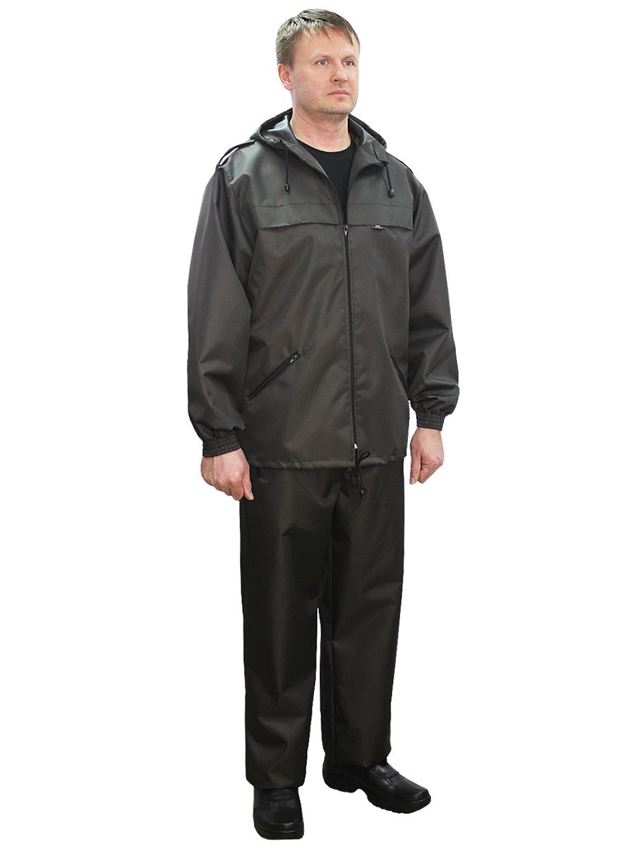 Костюм состоит из куртки и брюк. Предназначен для защиты от влаги и ветра. Куртка с центральной застежкой на тесьму-молнию, с верхними прорезными и нижними накладными карманами, рукав втачной, длинный, по низу стянут эластичной тесьмой. Брюки прямые, на поясе стянуты эластичной тесьмой, с карманами с отрезным бочком, по низу ширина брюк регулируется эластичным шнуром. Упакован в сумочку. Удобная и многофункциональная модель для тех, кто любит проводить свободное время на природе при любой погоде. Свободный крой позволяет легко одевать костюм поверх одежды и не сковывает движения. Рекомендуемые материалы: плащевые ткани с пропиткой ВО, водоупорные ткани. ГОСТ 25295-2003
