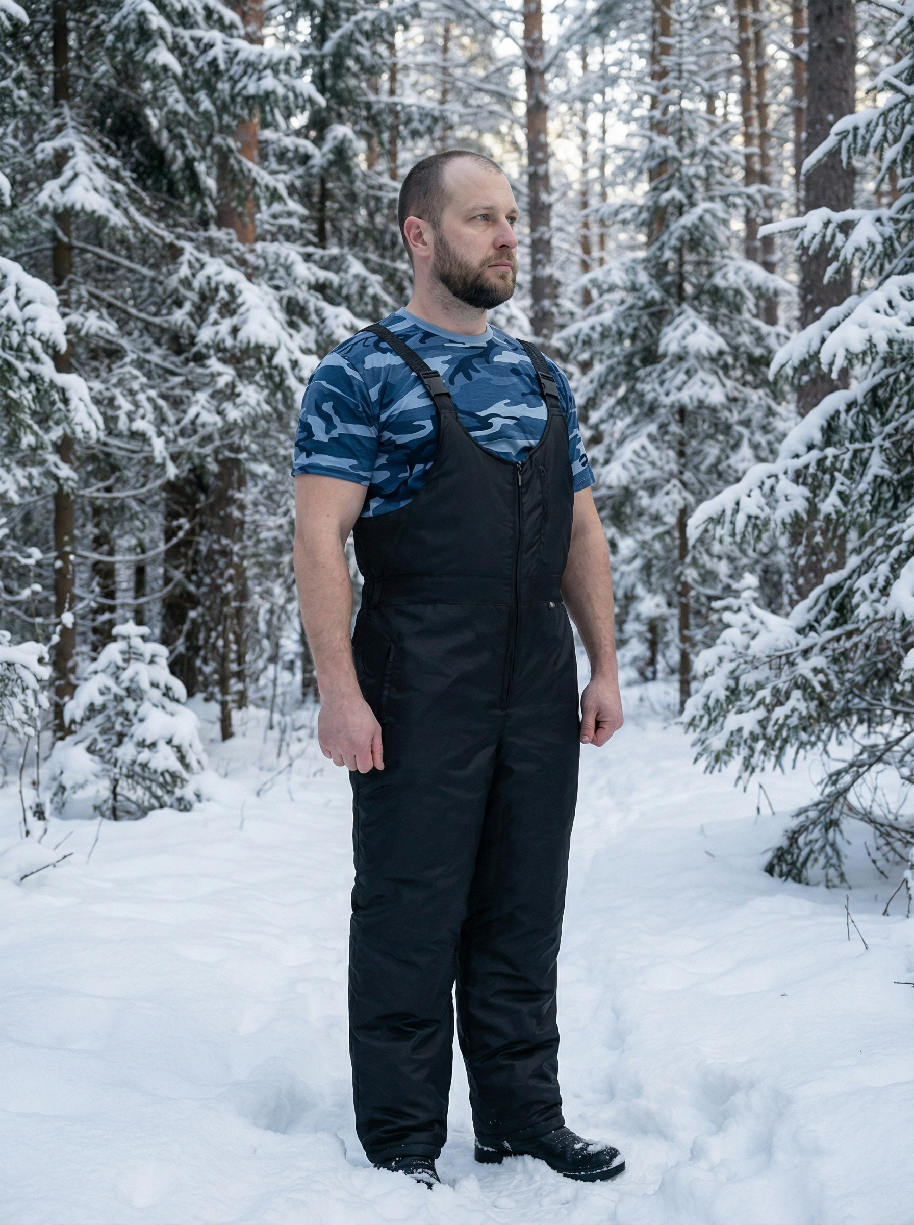 Утепленный полукомбинезон может использоваться в холодное время года для выездов на природу, охоту или рыбалку, а также при строительных и других работах вне помещения. Материал верха из 100% полиэстера с пропиткой,не впитывает влагу. Для утепления использован двойной слой синтепона выше колена и одинарный ниже, благодаря чему при высоком уровне теплоты сохраняется свобода движения. Полукомбинезон застегивается по центру на молнию, эластичные бретели с застежкой-фастекс можно регулировать по длине в соответствии с ростом. Талия стягивается эластичной тесьмой для удобства посадки. На груди имеется прорезной карман на молнии, в нижней части – по бокам два прорезных. Соответствует ГОСТ 25295-2003.