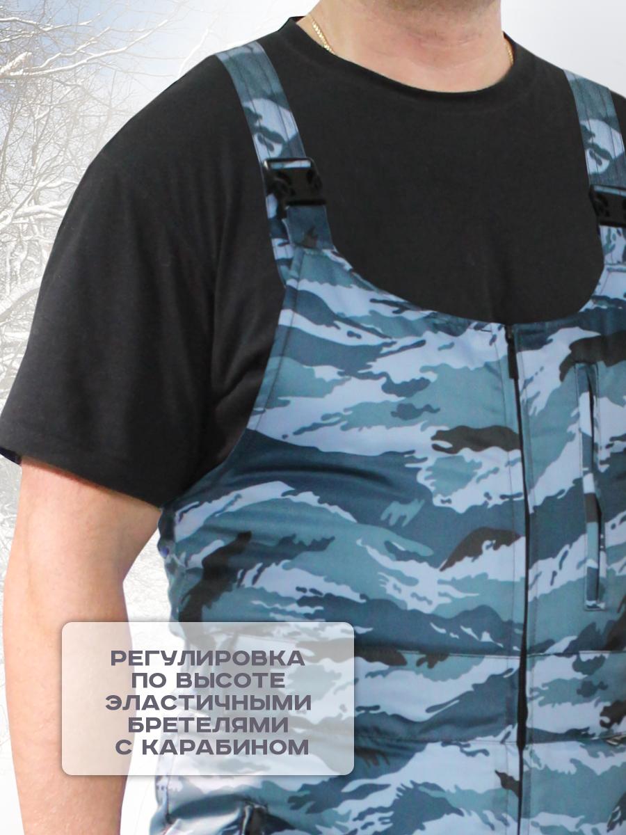 Утепленный полукомбинезон может использоваться в холодное время года для выездов на природу, охоту или рыбалку, а также при строительных и других работах вне помещения. Материал верха из 100% полиэстера с пропиткой,не впитывает влагу. Для утепления использован двойной слой синтепона выше колена и одинарный ниже, благодаря чему при высоком уровне теплоты сохраняется свобода движения. Полукомбинезон застегивается по центру на молнию, эластичные бретели с застежкой-фастекс можно регулировать по длине в соответствии с ростом. Талия стягивается эластичной тесьмой для удобства посадки. На груди имеется прорезной карман на молнии, в нижней части – по бокам два прорезных. Соответствует ГОСТ 25295-2003.