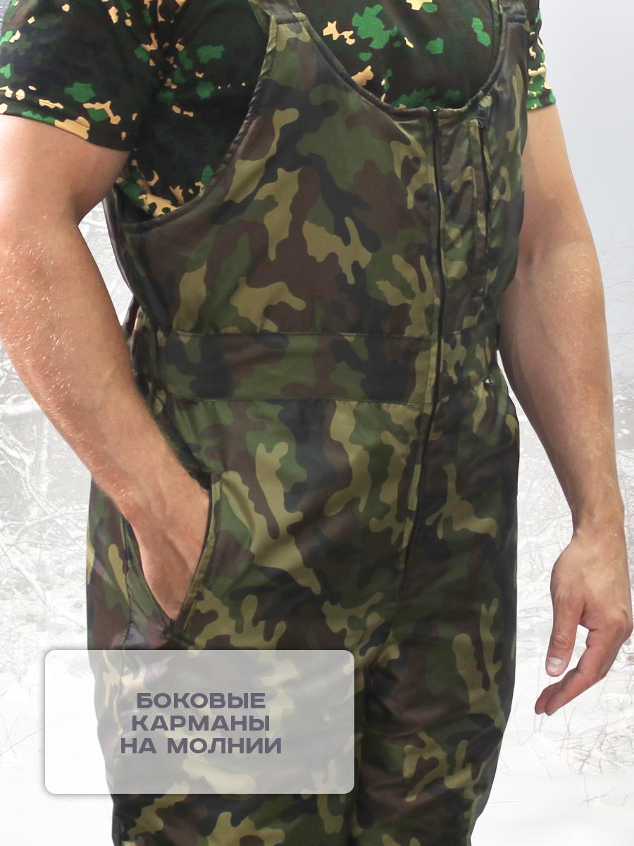 Утепленный полукомбинезон может использоваться в холодное время года для выездов на природу, охоту или рыбалку, а также при строительных и других работах вне помещения. Материал верха из 100% полиэстера с пропиткой,не впитывает влагу. Для утепления использован двойной слой синтепона выше колена и одинарный ниже, благодаря чему при высоком уровне теплоты сохраняется свобода движения. Полукомбинезон застегивается по центру на молнию, эластичные бретели с застежкой-фастекс можно регулировать по длине в соответствии с ростом. Талия стягивается эластичной тесьмой для удобства посадки. На груди имеется прорезной карман на молнии, в нижней части – по бокам два прорезных. Соответствует ГОСТ 25295-2003.
