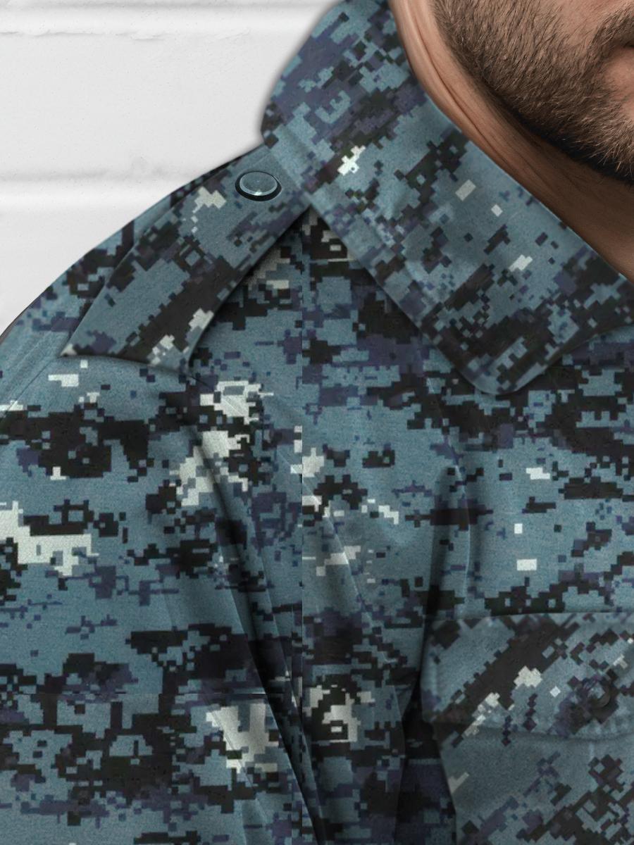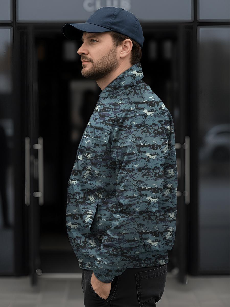 Ветровка Охрана благодаря особенностям пошива и использованию современных материалов с водоотталкивающей пропиткой надежно защищает от ветра и влаги, а одинарный слой синтепона обеспечивает дополнительную теплоту. Это комфортный и функциональный вариант экипировки как для сотрудников при обеспечении безопасности вне помещений, так и для любителей активного отдыха на природе. Куртка с втачным рукавом и отложным воротником застегивается по центру на молнию, накладные карманы на груди с клапанами на кнопках имеют встречную складку, фактически увеличивающую их объем. На уровне талии прорезные карманы. На плечах куртки погоны, на которые можно закрепить фальшпогоны. Манжеты и низ куртки регулируются по объему эластичной резинкой. Соответствует ГОСТ 25295-2003.