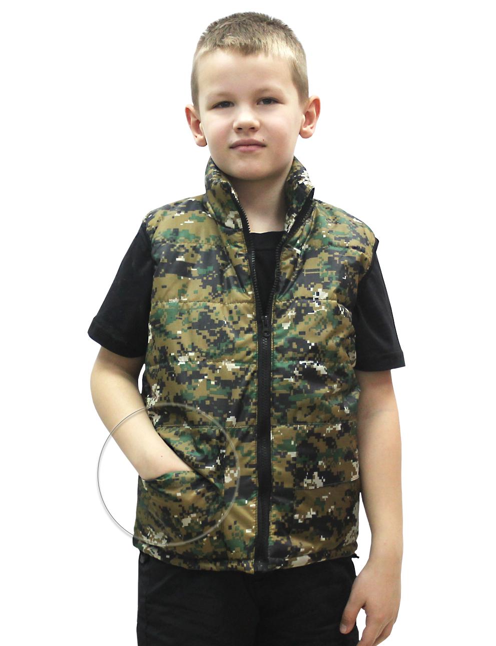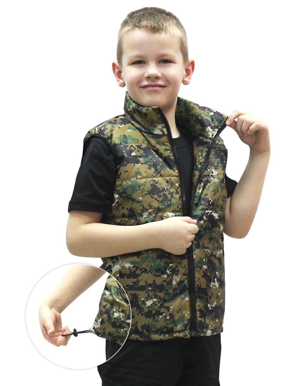Жилет утепленный подростковый. Для всех сезонов незаменимая вещь. Основная ткань (таффета), (оксфорд), (дюспо)-100% плиэстер, с ВО пропиткой. Утеплитель-1 слой синтепона 200гр/м2. Фирменная подкладка BVR. Жилет прямого силуэта, с центральной застежкой на молнию. Воротник стойка защитит от ветра в прохладную погоду. Нижние боковые карманы с обратным клапаном, для защиты личных вещей. Проймы для удобства, обработаны эластичной лентой. Низ жилета регулируется по ширине эластичным шнуром с фиксаторами.