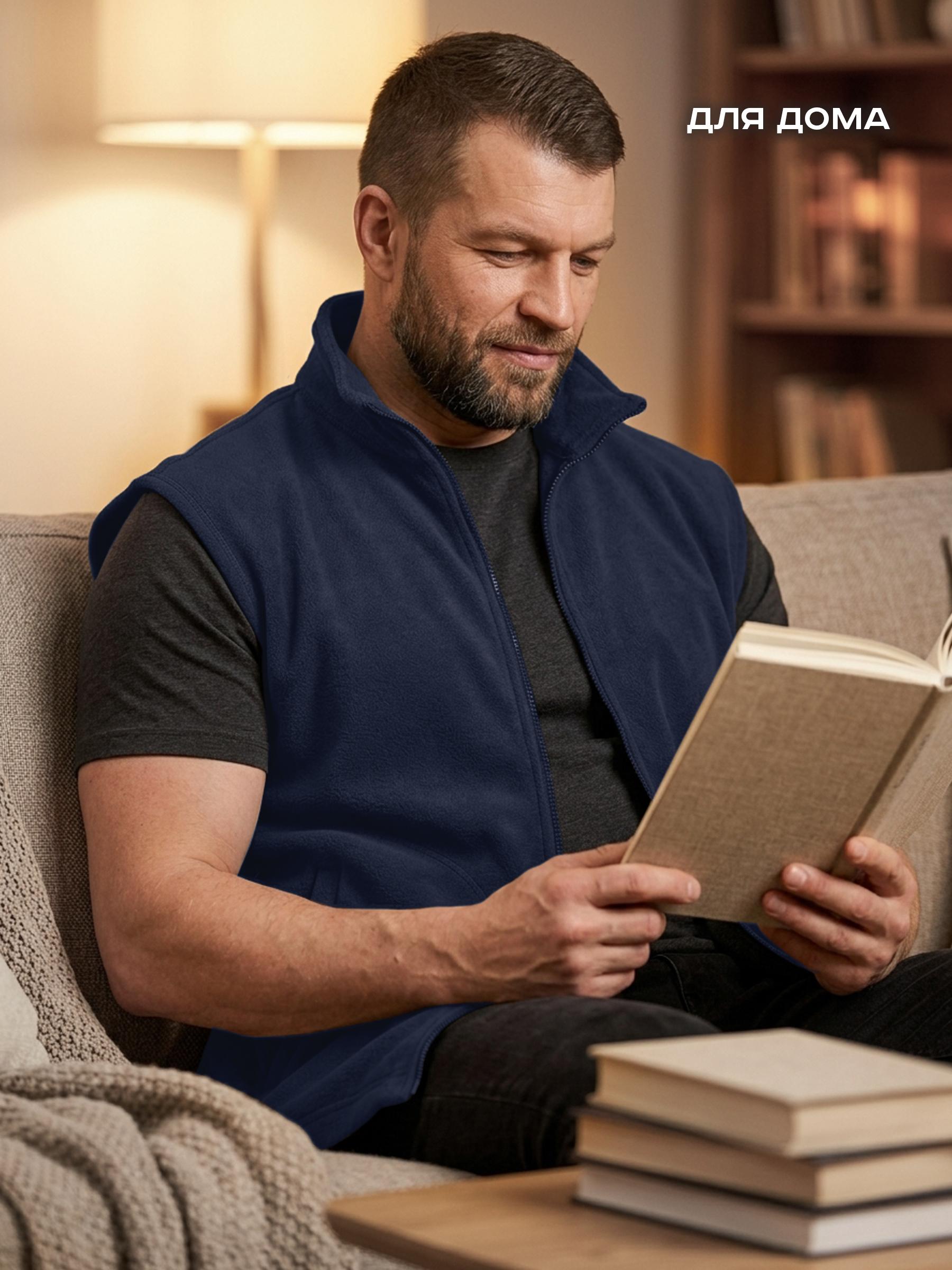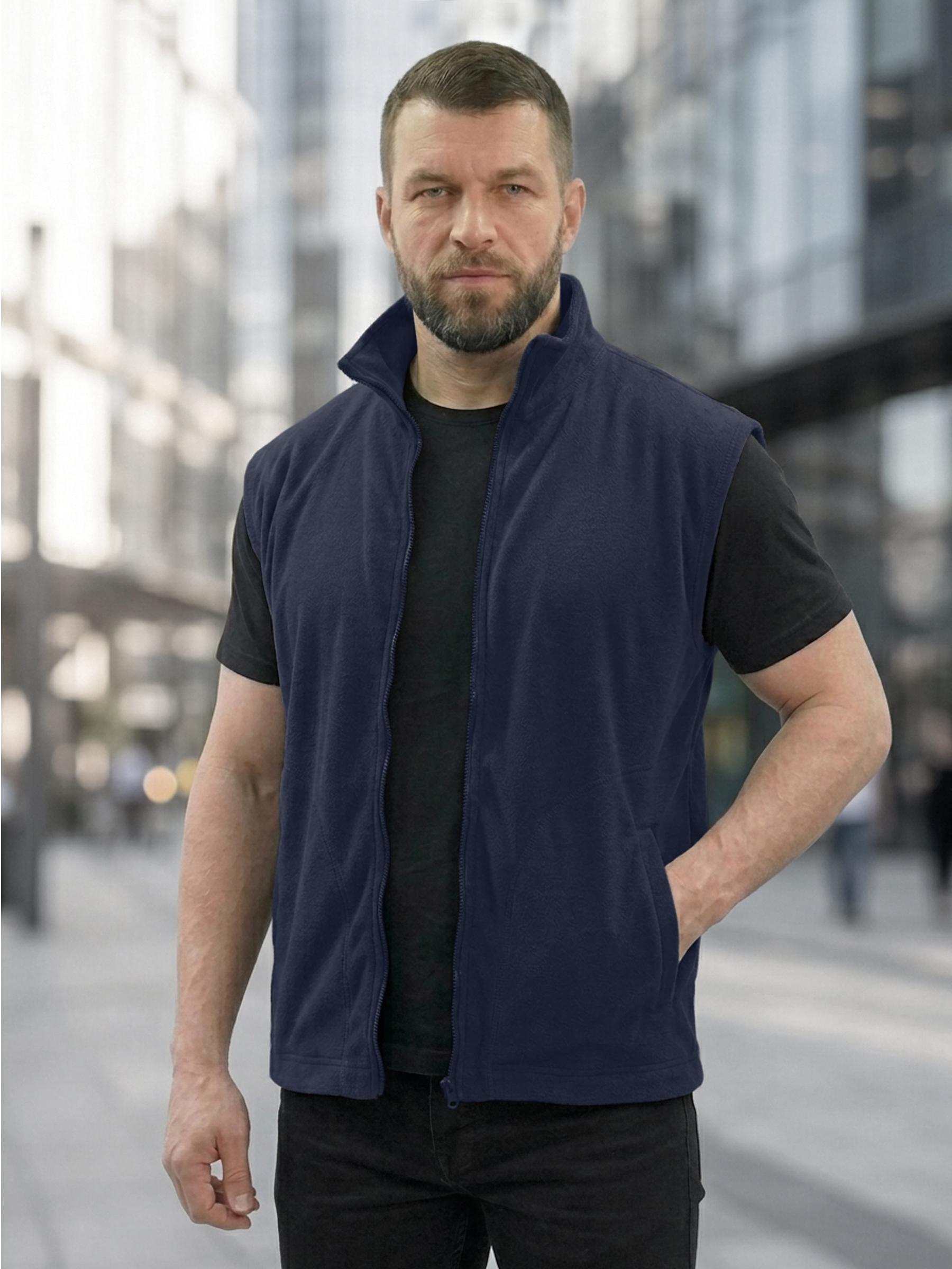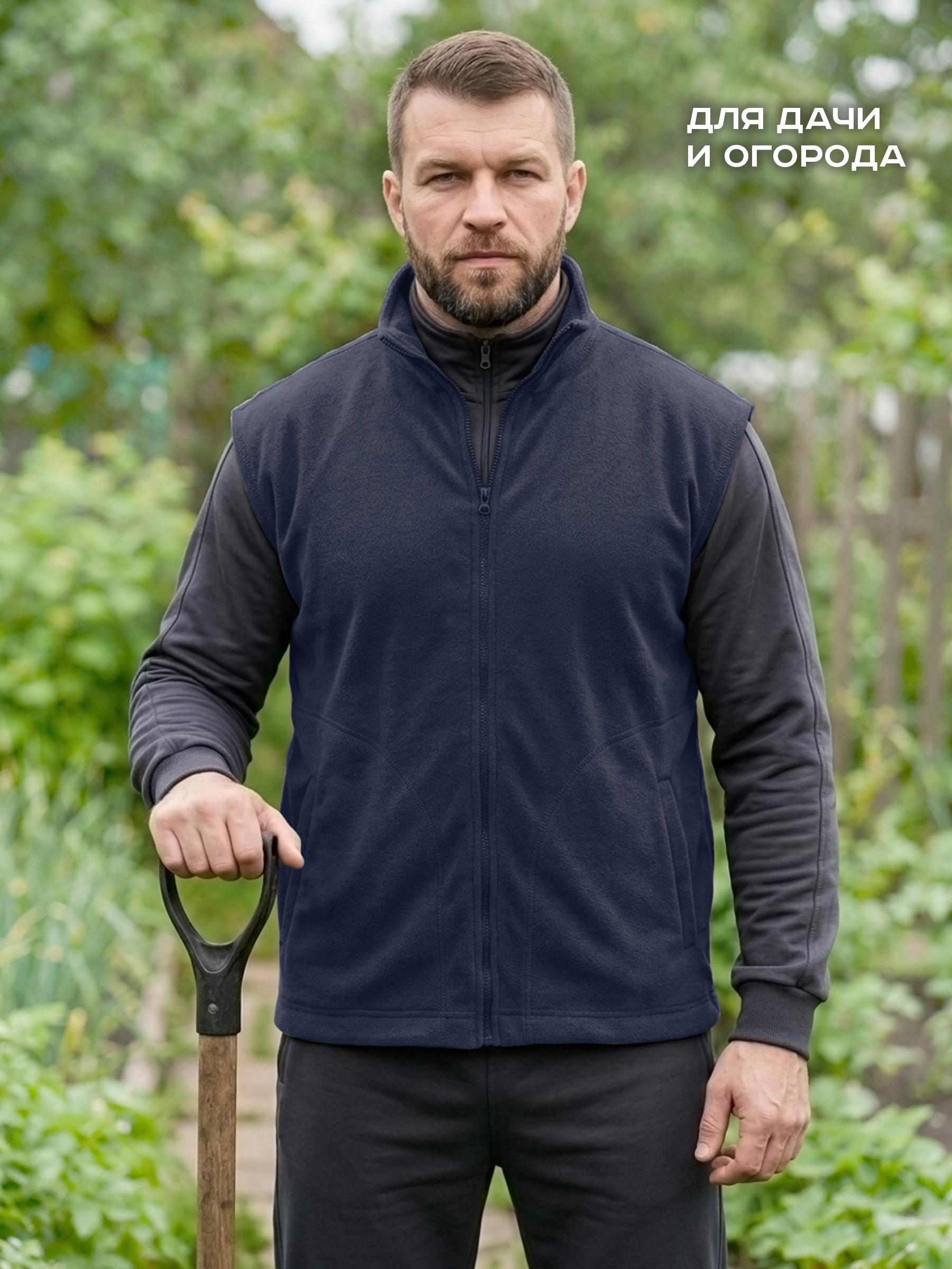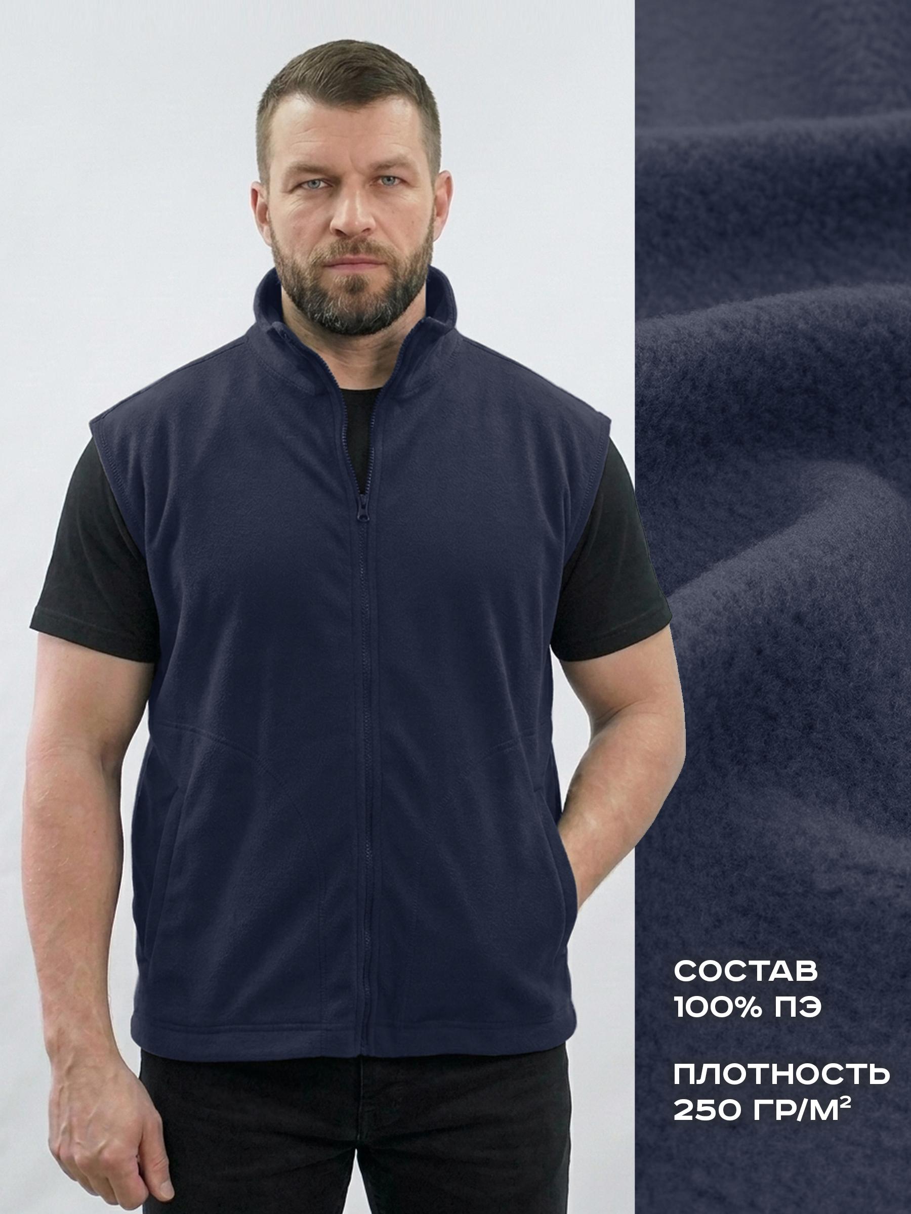 Жилет укороченный, воротник-стойка с центральной застежкой на тесьму-молнию. Имеет два нижних кармана на молнии. Рекомендуемые материалы: ткань Флис. ГОСТ 31410-2009.